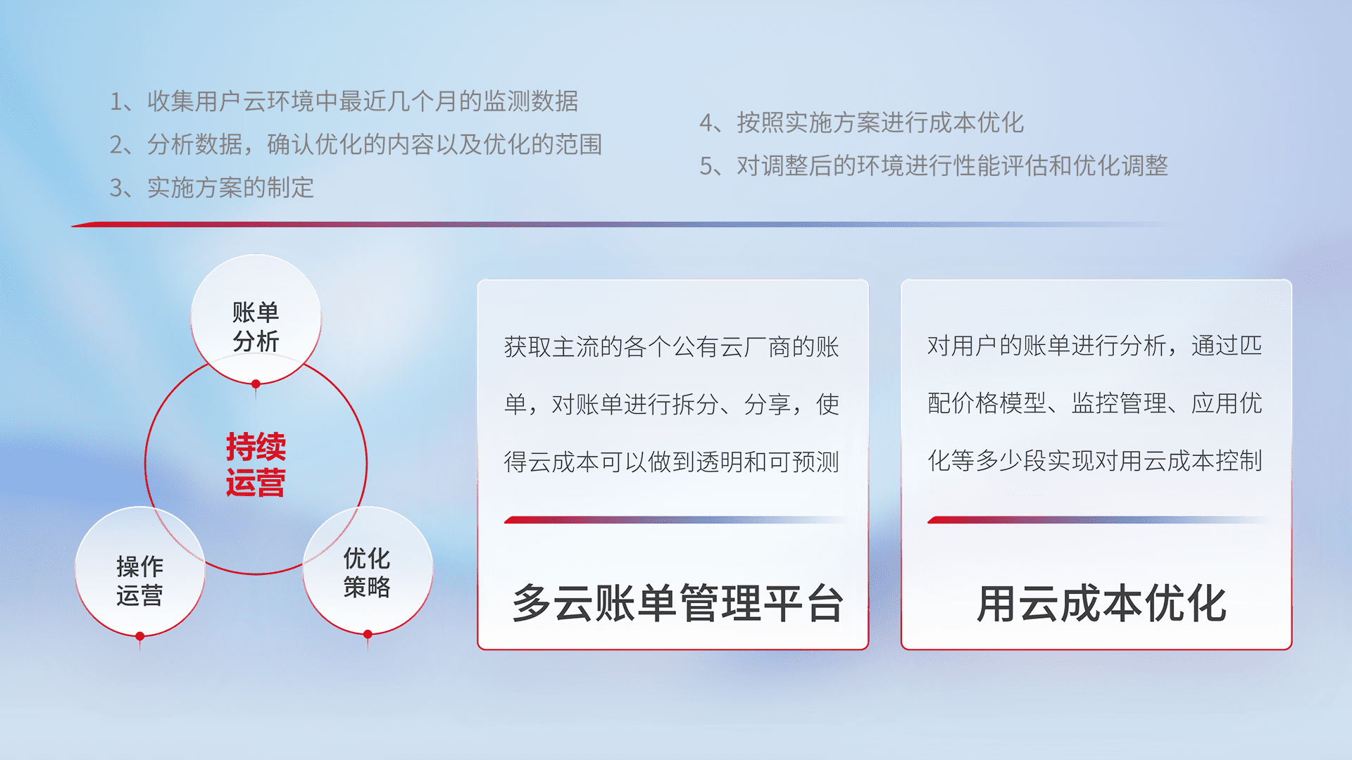 监控业务系统资源开销,,对资源的消耗精确计量,,,,实现费用的透明化管理,,,,不断提升资源使用率,,,,调整资源购买方式,,,,降低资源费用成本,,,,用云成本可预测、、用云费用可优化,,云资源配额有据可依。。
